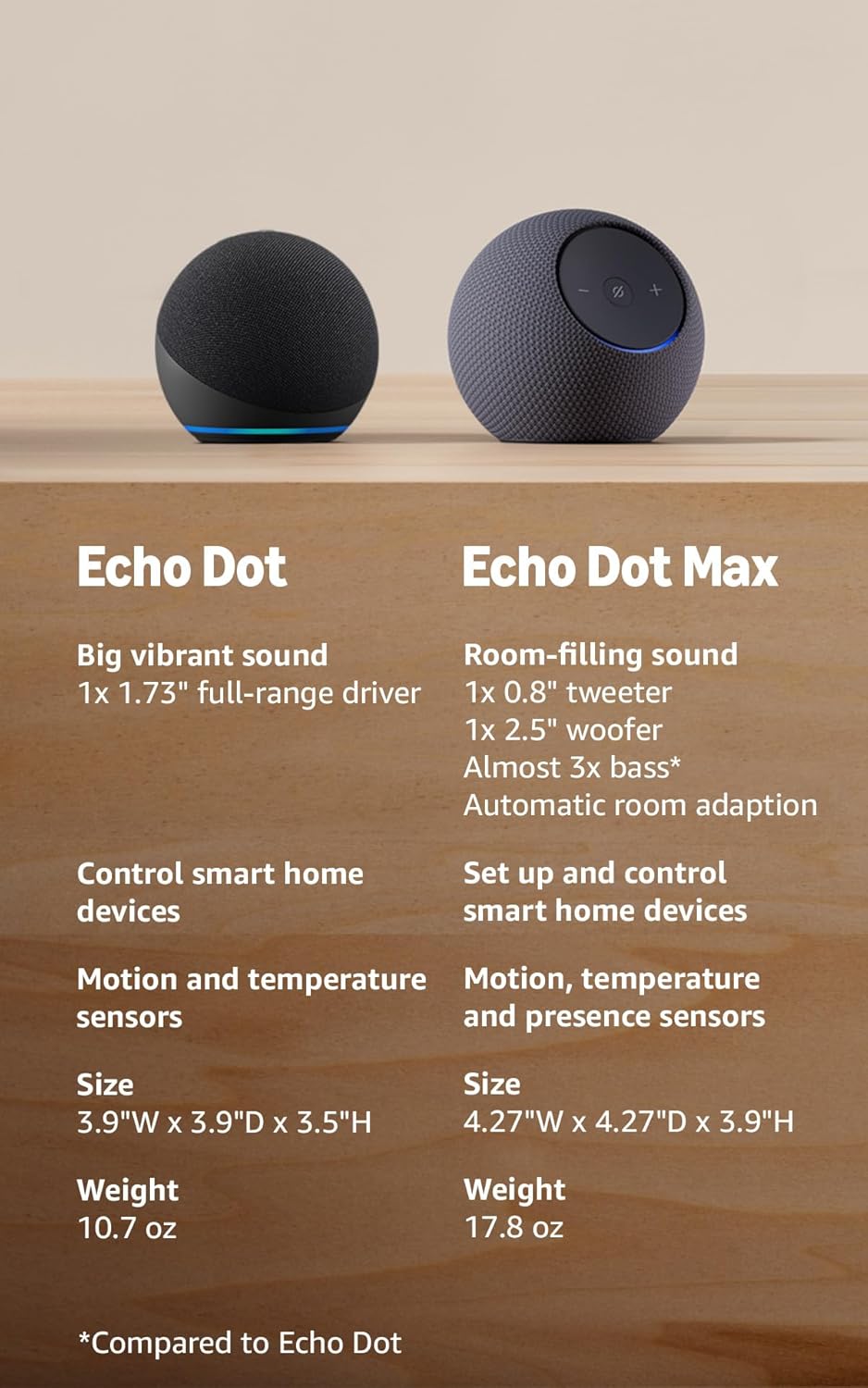 Control compatible smart home devices with your voice and routines triggered by built in motion or indoor temperature sensors. You can create routines to automatically turn on lights when you walk into a room or start a fan if the inside temperature goes above your comfort zone.