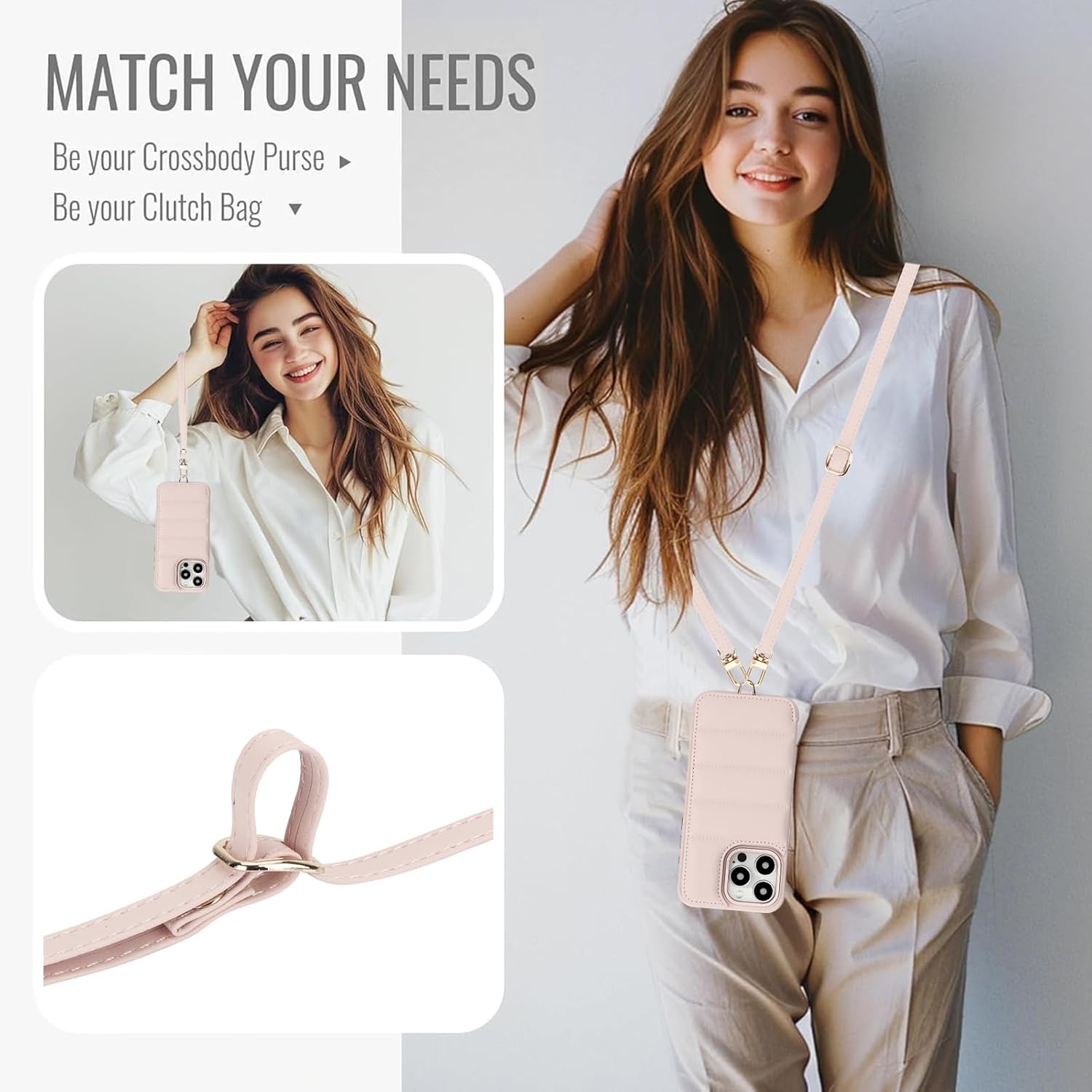 This protective case includes a versatile, anti loss lanyard strap. The adjustable crossbody strap allows you to wear your phone over your shoulder or around your neck, keeping your hands free during busy days. Both the shoulder strap and the convenient wrist rope are detachable, giving you the flexibility to switch between a wallet case and a traditional crossbody bag.