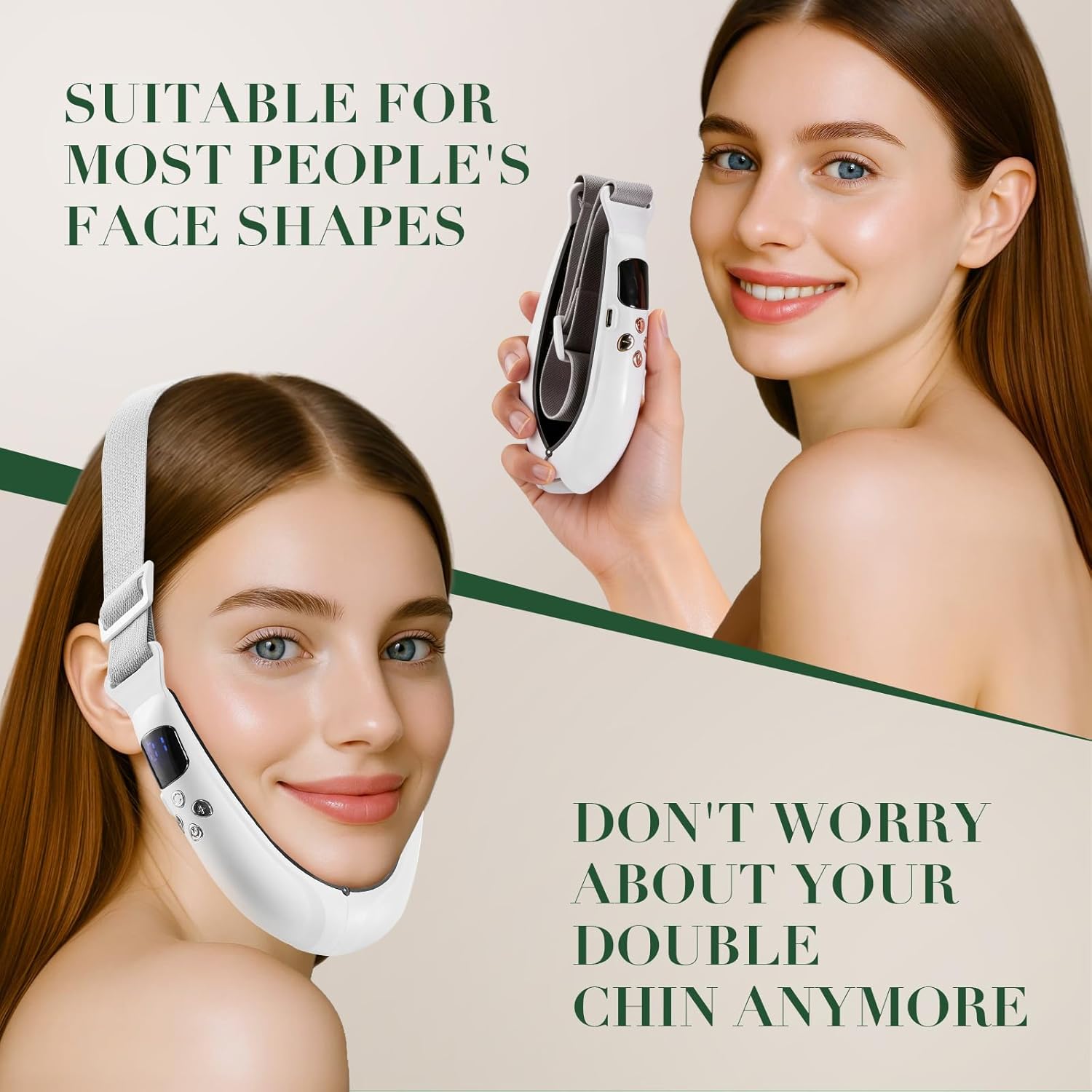 Electric Double Chin Device and V-Face Machine with 6 Modes and 12 Gear Adjustable Intensities - for Jawline Sculptor and Face Slimmer - White