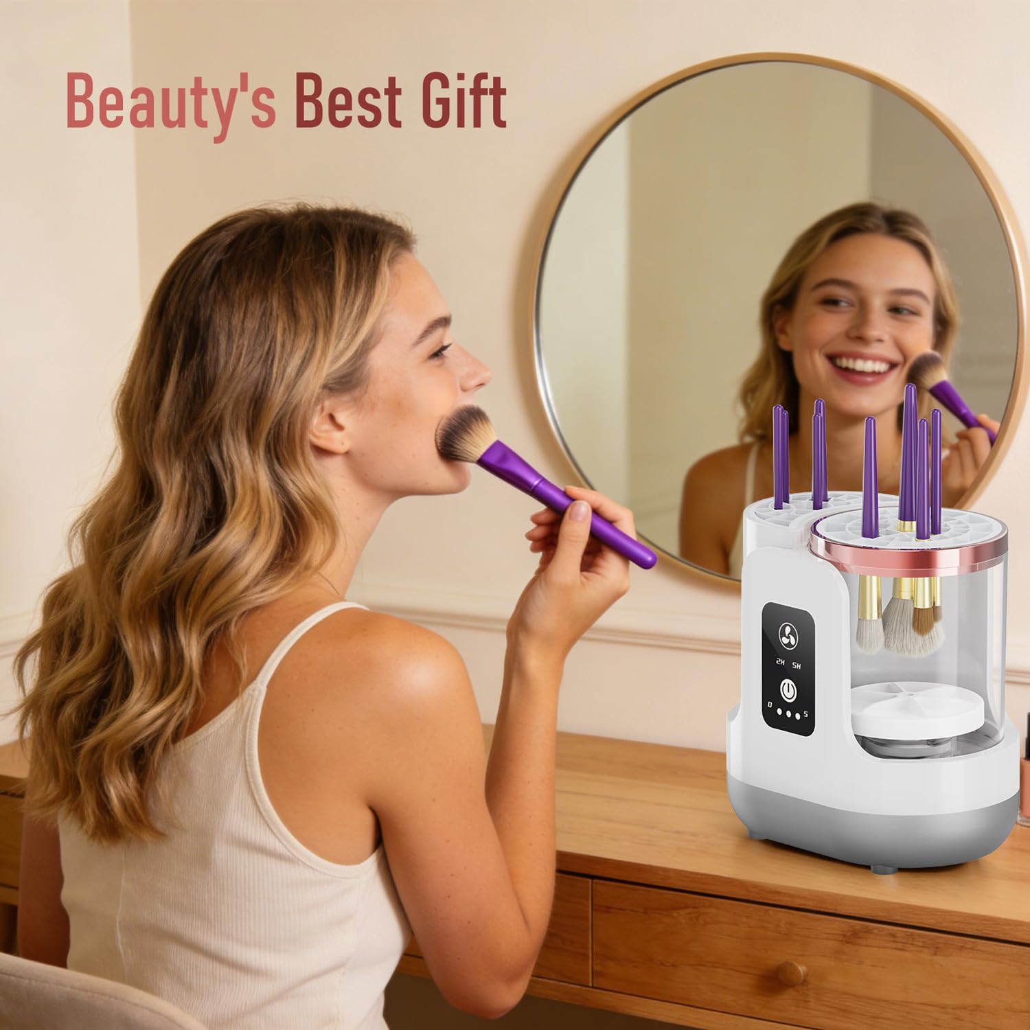 Electric Makeup Brush Cleaner Machine,Automatic Makeup Brush Cleaner with Dryer for Deep Cleaning,Make up Brush Cleaner Fit for All Size Makeup Brush