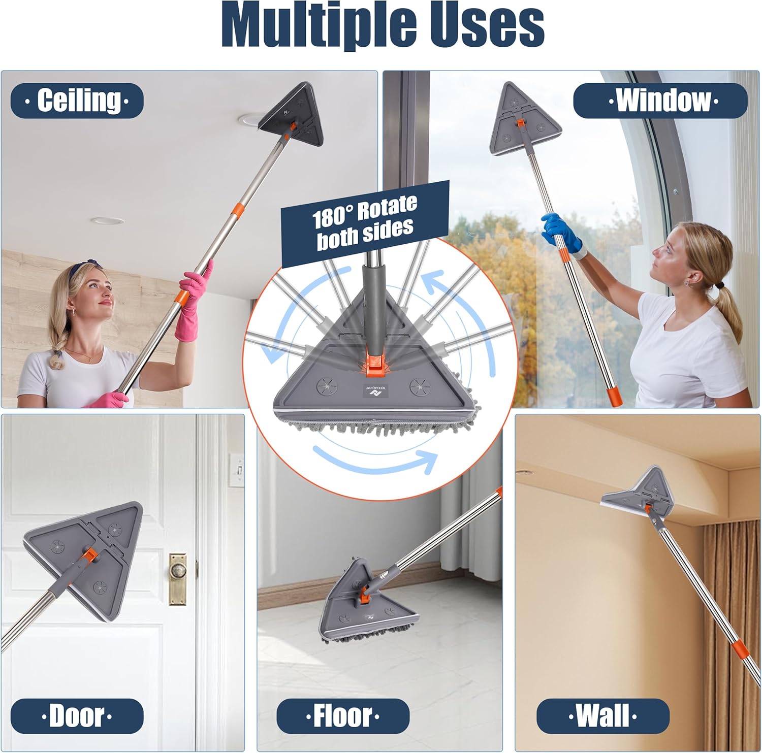 The wall mop includes five metal extension poles that can be adjusted from 37 inches to 80 inches. This tool allows you to clean high windows or walls safely from the ground, eliminating the need for ladders. It is specifically designed for easy cleaning of hard-to-reach surfaces throughout your home.