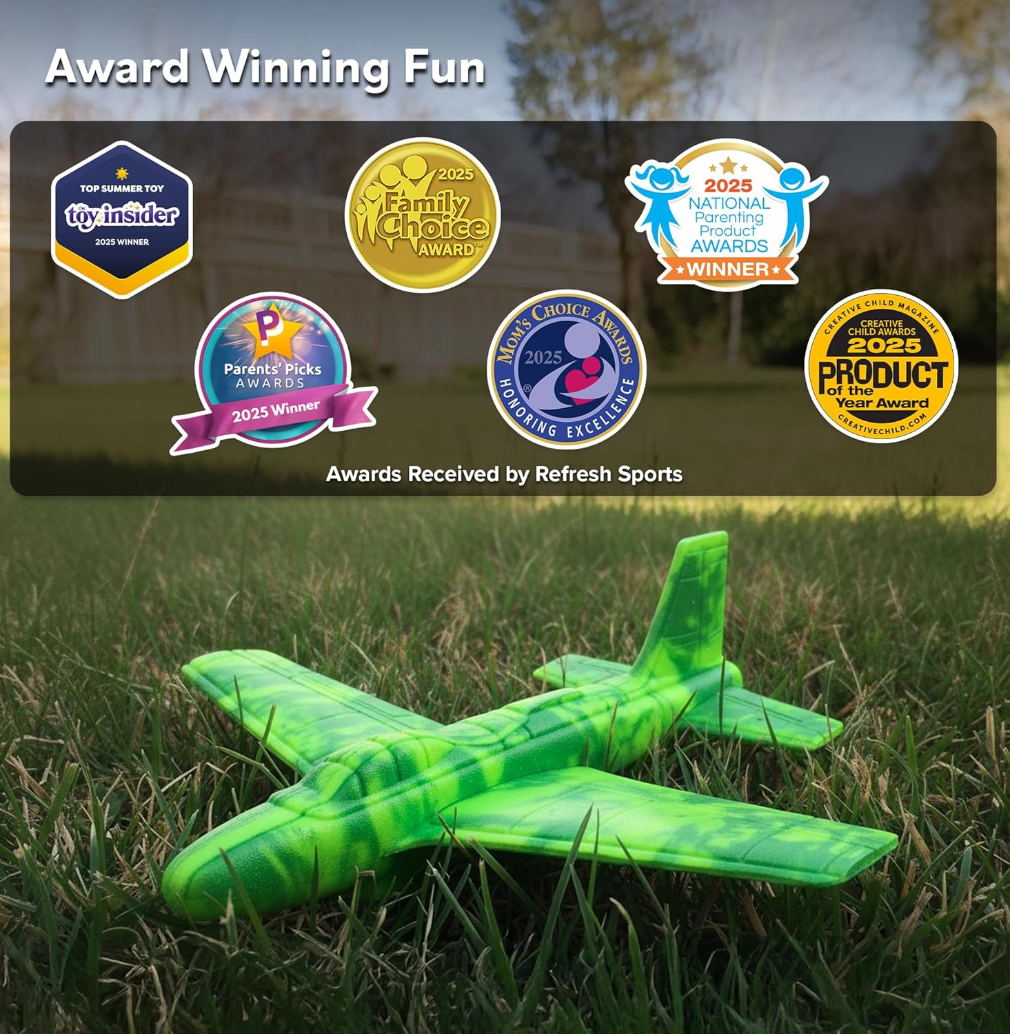 Soar through the sky with these EVA foam mini gliders designed for an unrivaled flight time. They can glide up to one hundred feet in the air. The perfectly weighted design ensures thousands of delightful flights promising endless hours of outdoor fun for your kids.