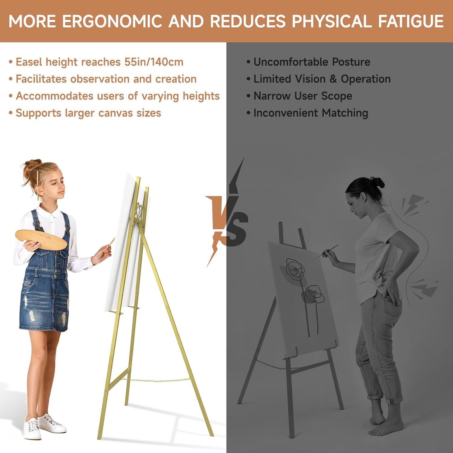 The upgraded 56-inch height is perfectly calibrated for natural standing postures, helping to relieve neck and back strain during long painting sessions. This height ensures a comfortable viewing distance for your artwork while creating a sleek, professional display that captures attention.