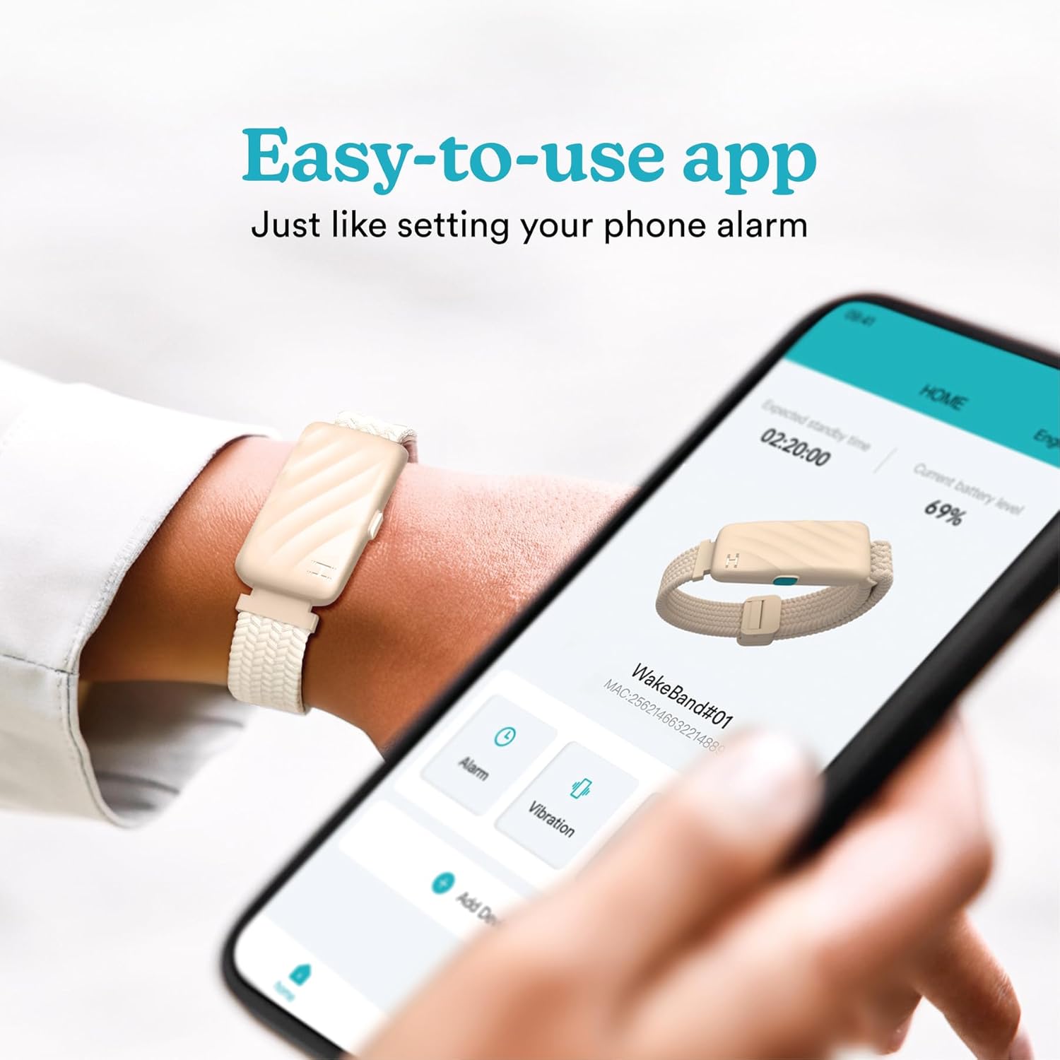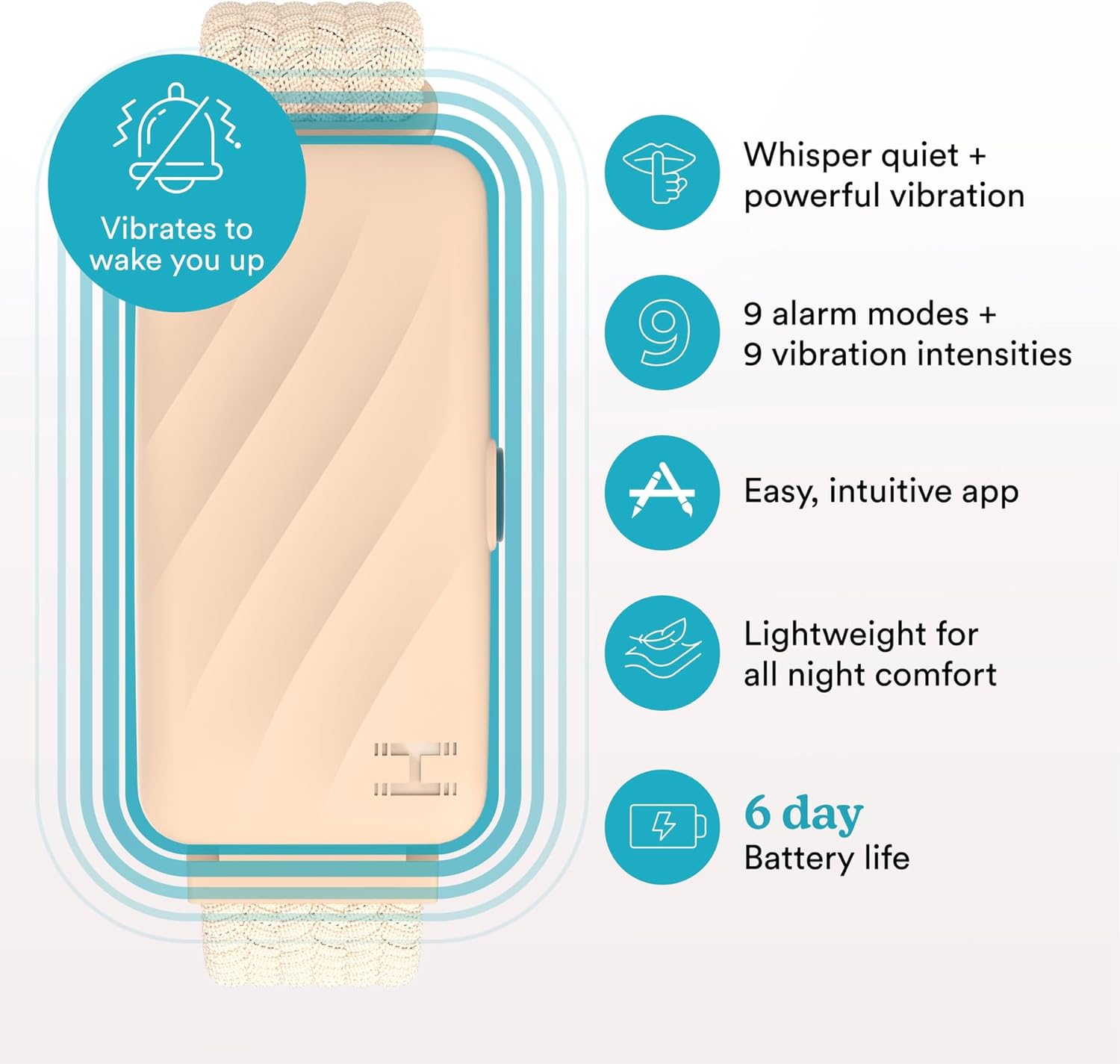 Homedics WakeBand Silent Vibrating Alarm Wristband, Ultra-Light Comfortable Design, 9 Vibration Patterns & 9 Intensities, Up to 6-Day Battery, iOS/Android App, Cream