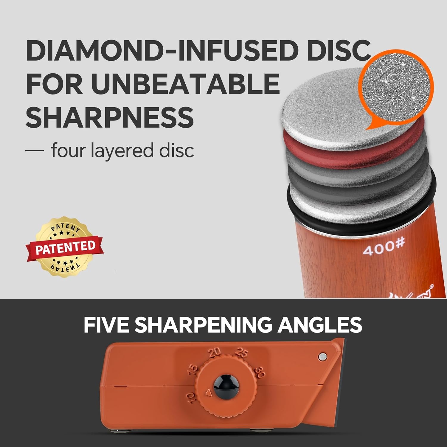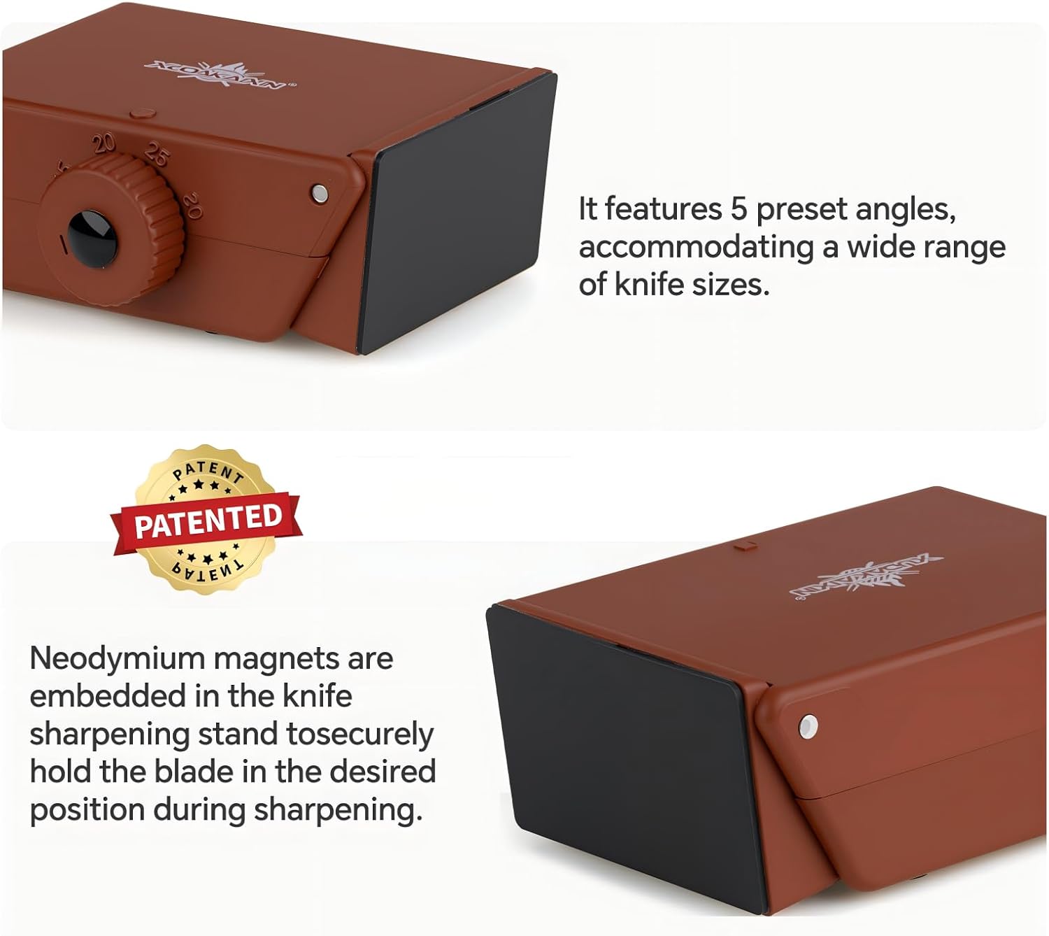 The patented design allows you to select from five different angles to match your specific cutlery. This makes it easy and quick to sharpen both traditional kitchen knives and specialty blades with high precision.