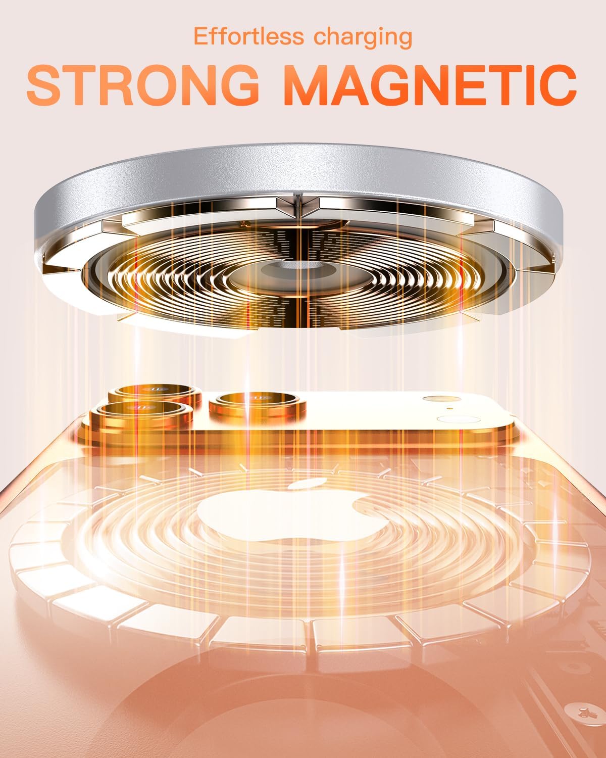This charger utilizes sophisticated magnetic technology to automatically align your phone into the perfect charging position. The strong magnetic force ensures your device remains securely attached and stable, even if the phone vibrates from incoming calls or texts. At night, you can simply place your phone on the pad for effortless, worry free power without needing to manually adjust the placement.