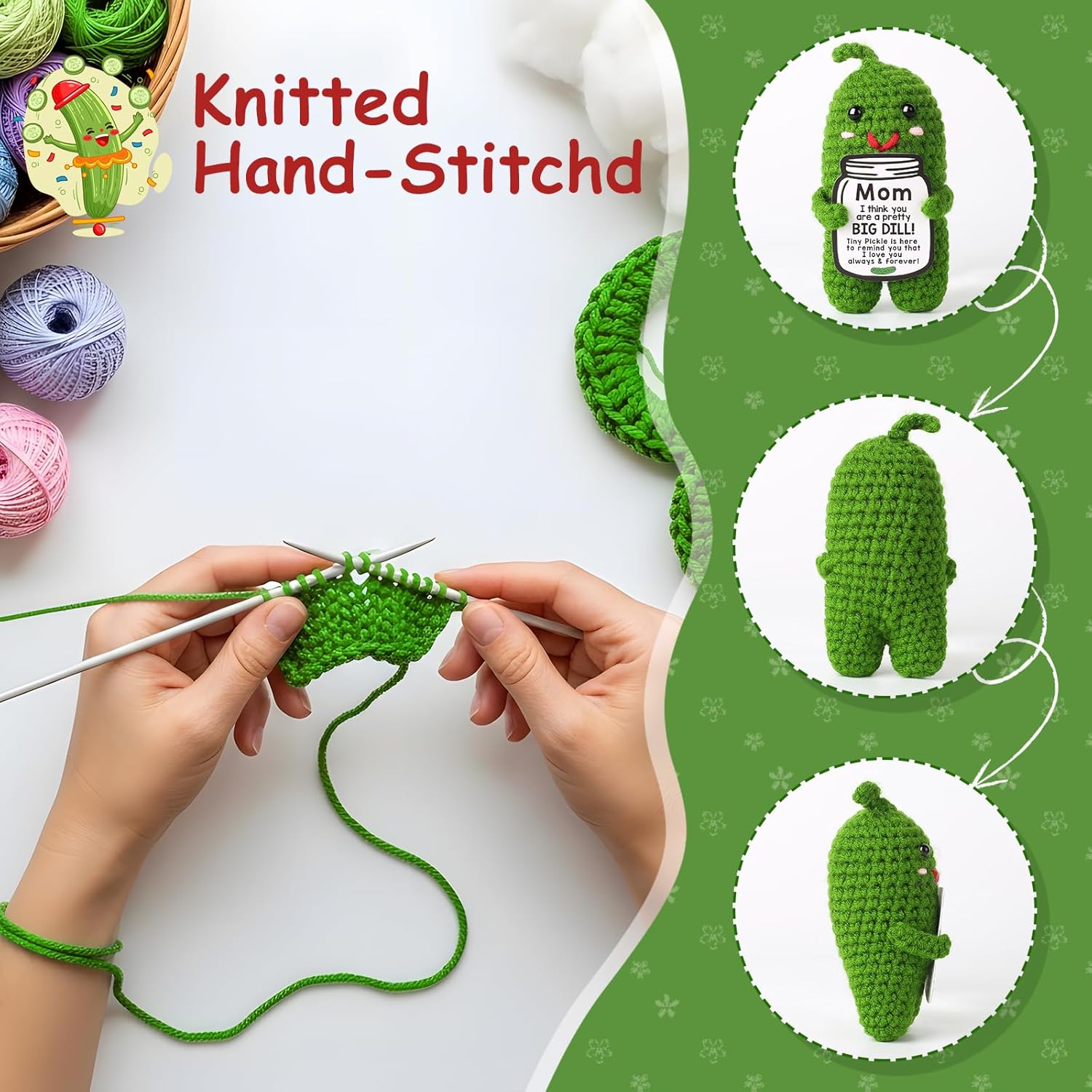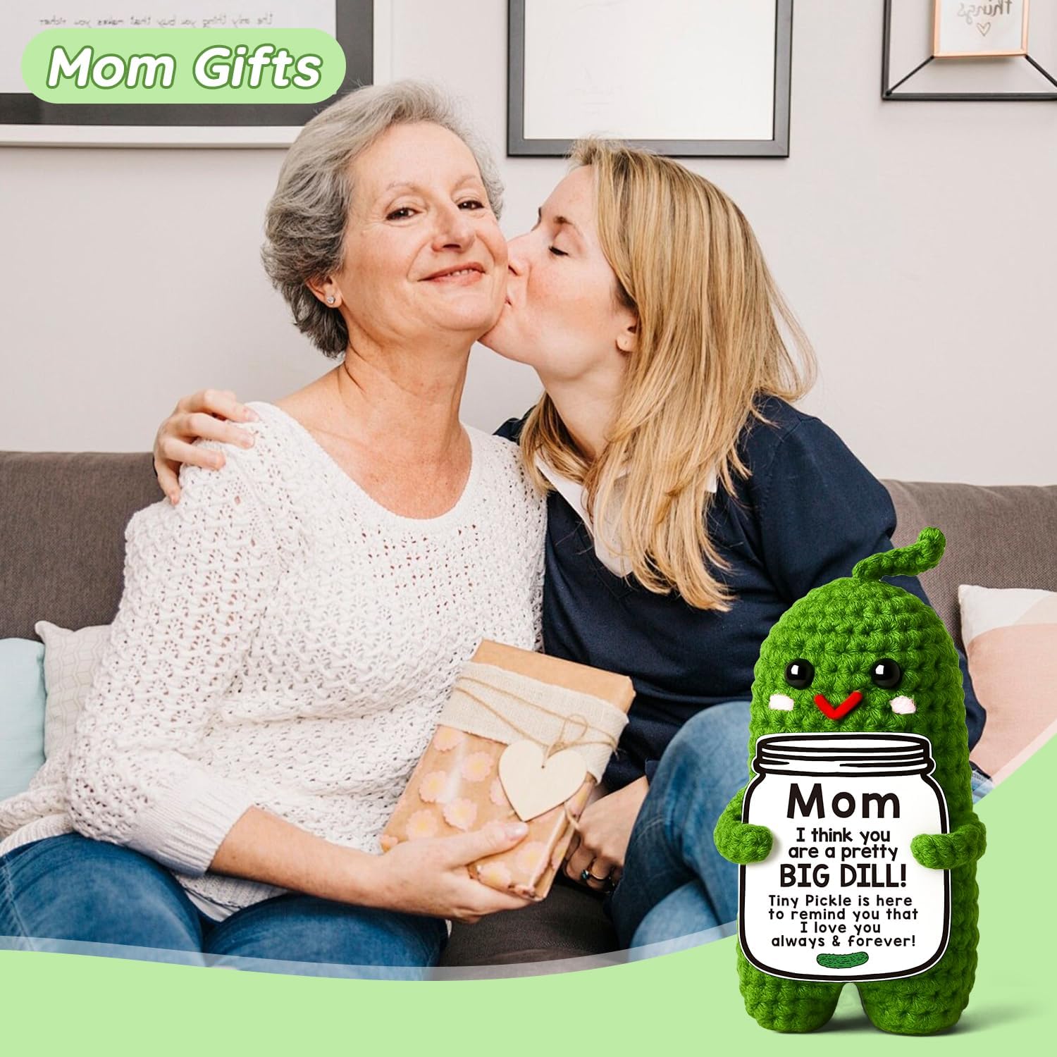 MAMAGIFTREE Mothers Day Birthday Gifts for Mom from Daughter Son, Handmade Crochet Pickle Plush “Big Dill” Gift for Mother in Law or Stepmom Mothers Day Keepsake, I Love You Mama Small Cute Decor