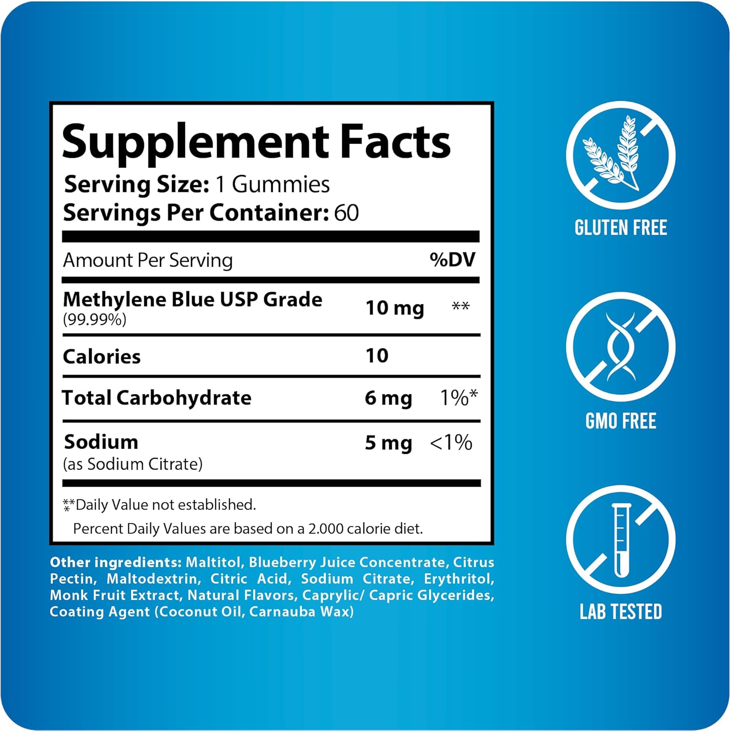 Methylene Blue Gummies USP Grade 2%, 60 Days Supply, Proudly USA Company, Vegan, Non-GMO 60 Cnts