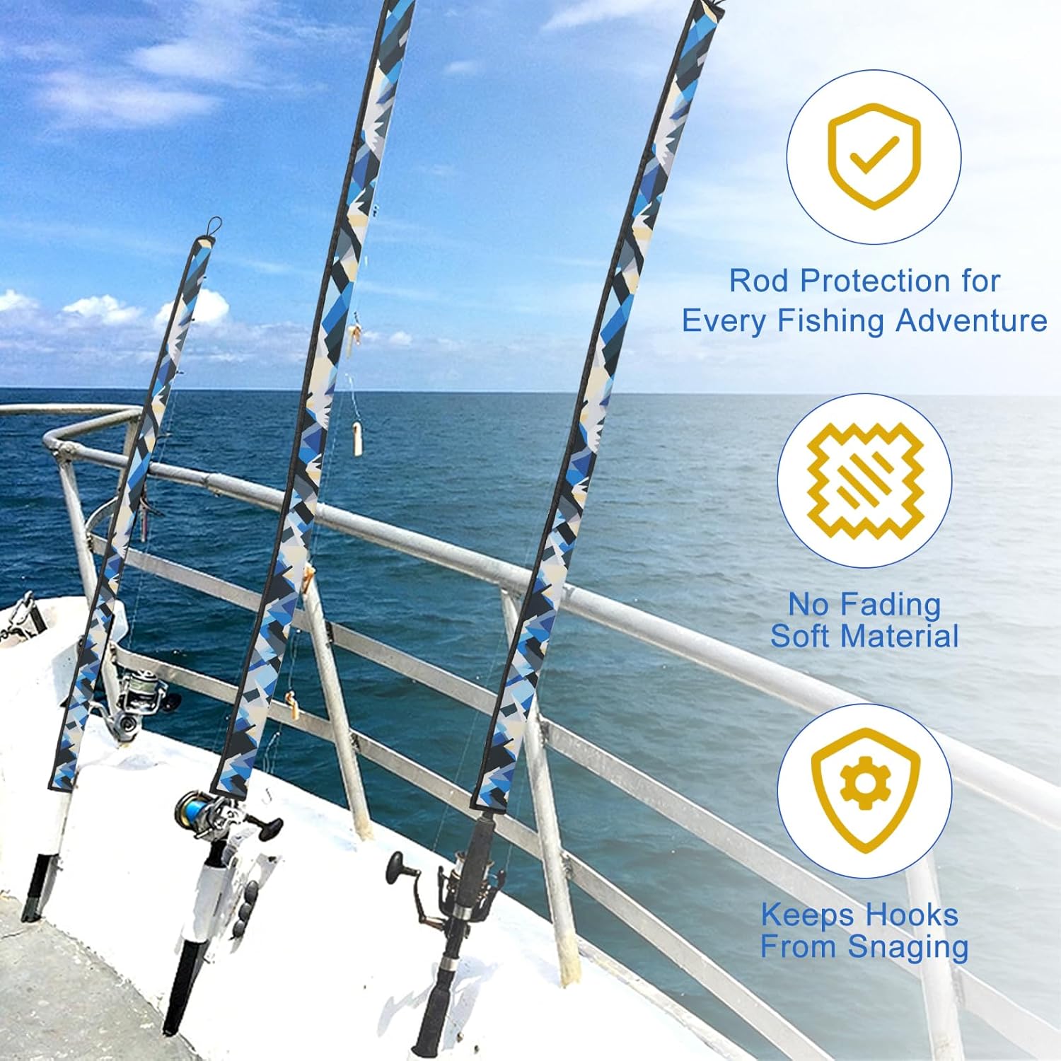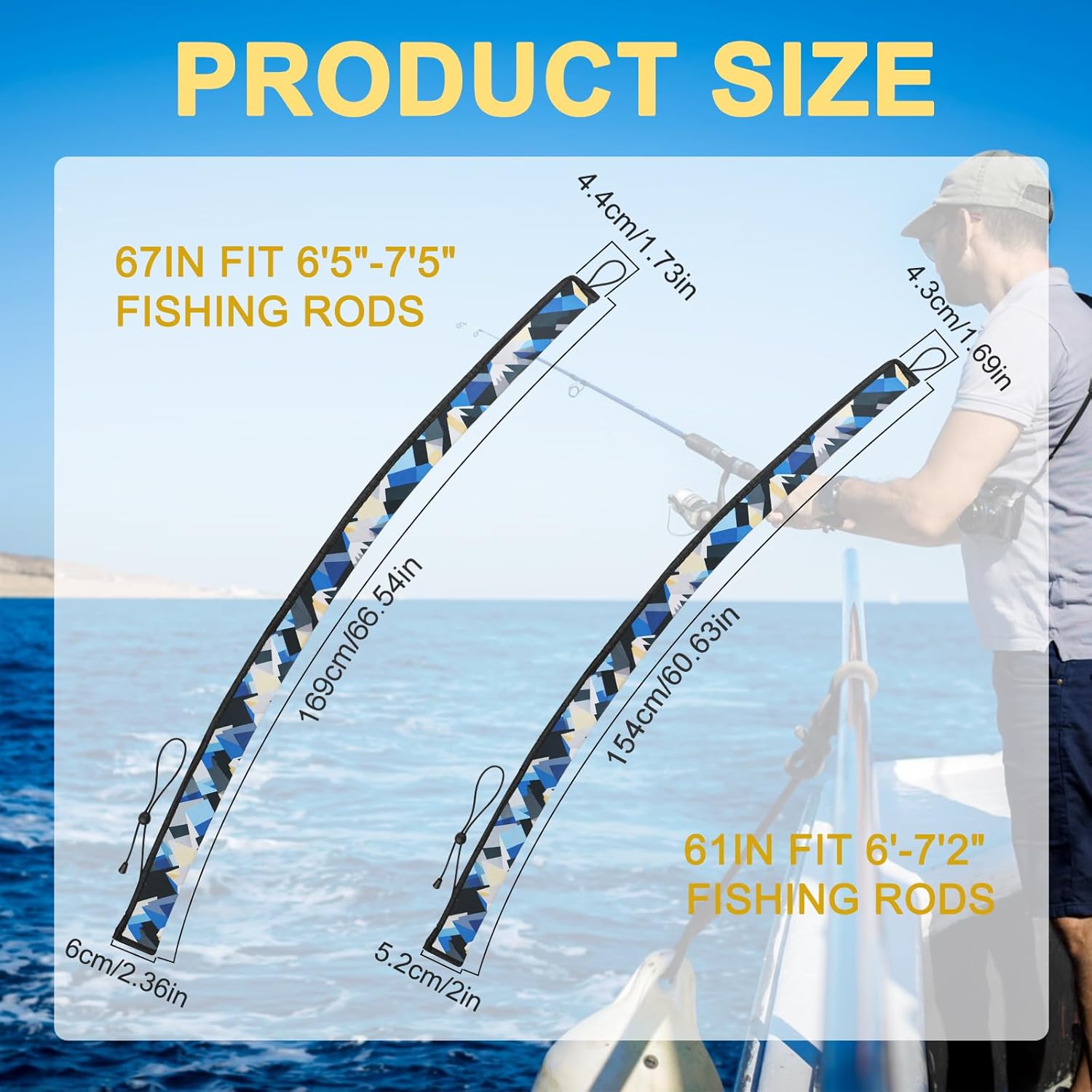 Neoprene Fishing Rod Sleeve - Fishing Rod Cover for Storage & Transportation - Camouflage Blue Puncture Resistant Rod Sock for Casting, Trolling, Spinning Rods