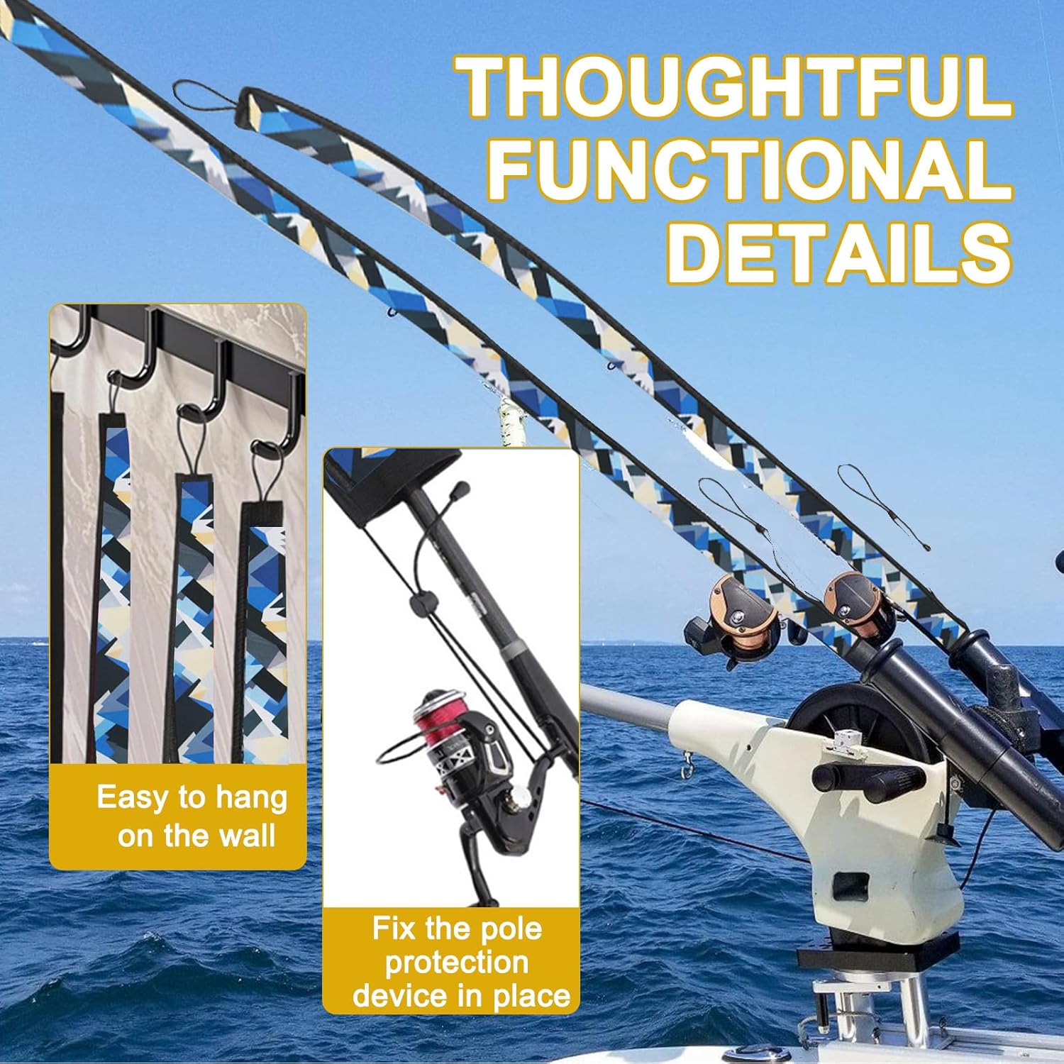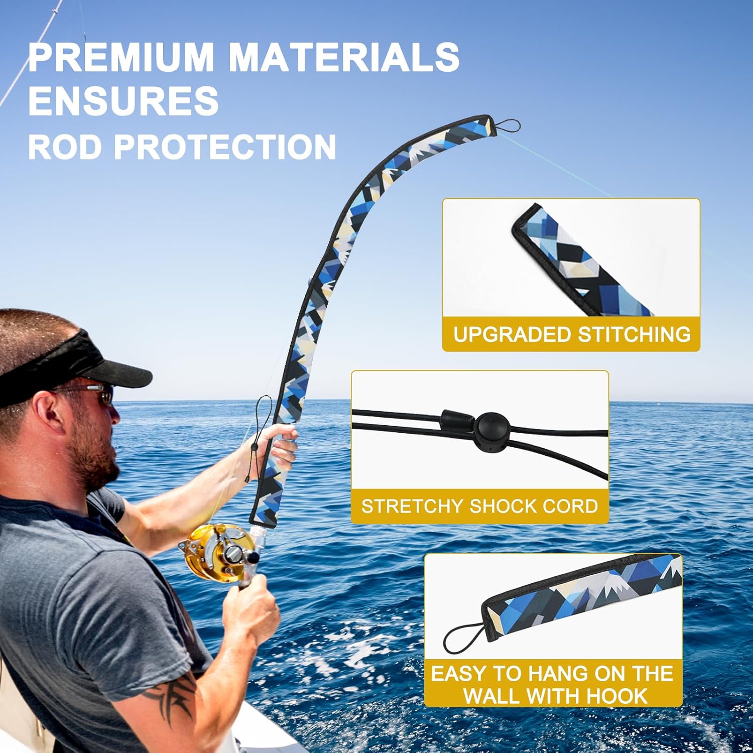 This reinforced sleeve features a specialized top stitching design that prevents rod tips from puncturing the head of the cover. An adjustable drawstring lock ensures a secure fit for various rod styles, while the newly added hanging ring allows for easy storage on walls or fishing boats to save valuable space.