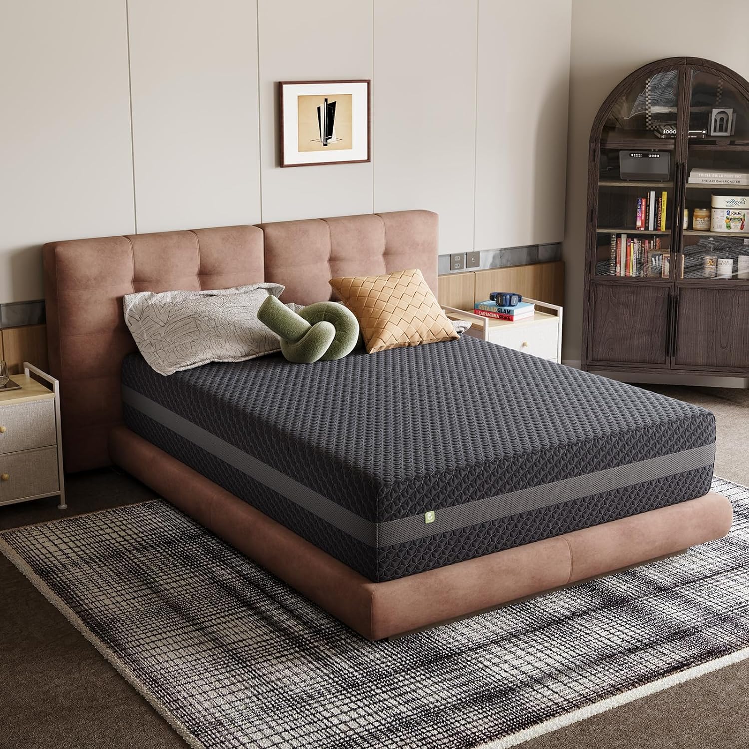 The mattress is wrapped in a soft, skin friendly knit fabric featuring a sophisticated dark gray diamond pattern for a clean and modern look. For your peace of mind, the cover is OEKO-TEX certified and has been tested for harmful substances. This polished appearance ensures the mattress complements a wide range of bedroom styles while providing a premium feel.