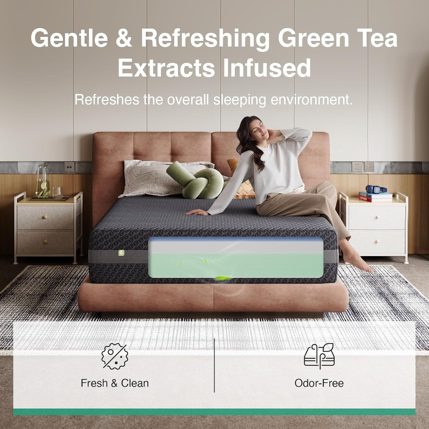 Featuring specialized green tea infused foam, this mattress is designed to manage odors and maintain a cleaner sleep environment over time. This infusion supports a consistently fresh feel, enhancing overall sleep comfort even with heavy daily use. It ensures that your bed remains a refined and inviting space night after night.