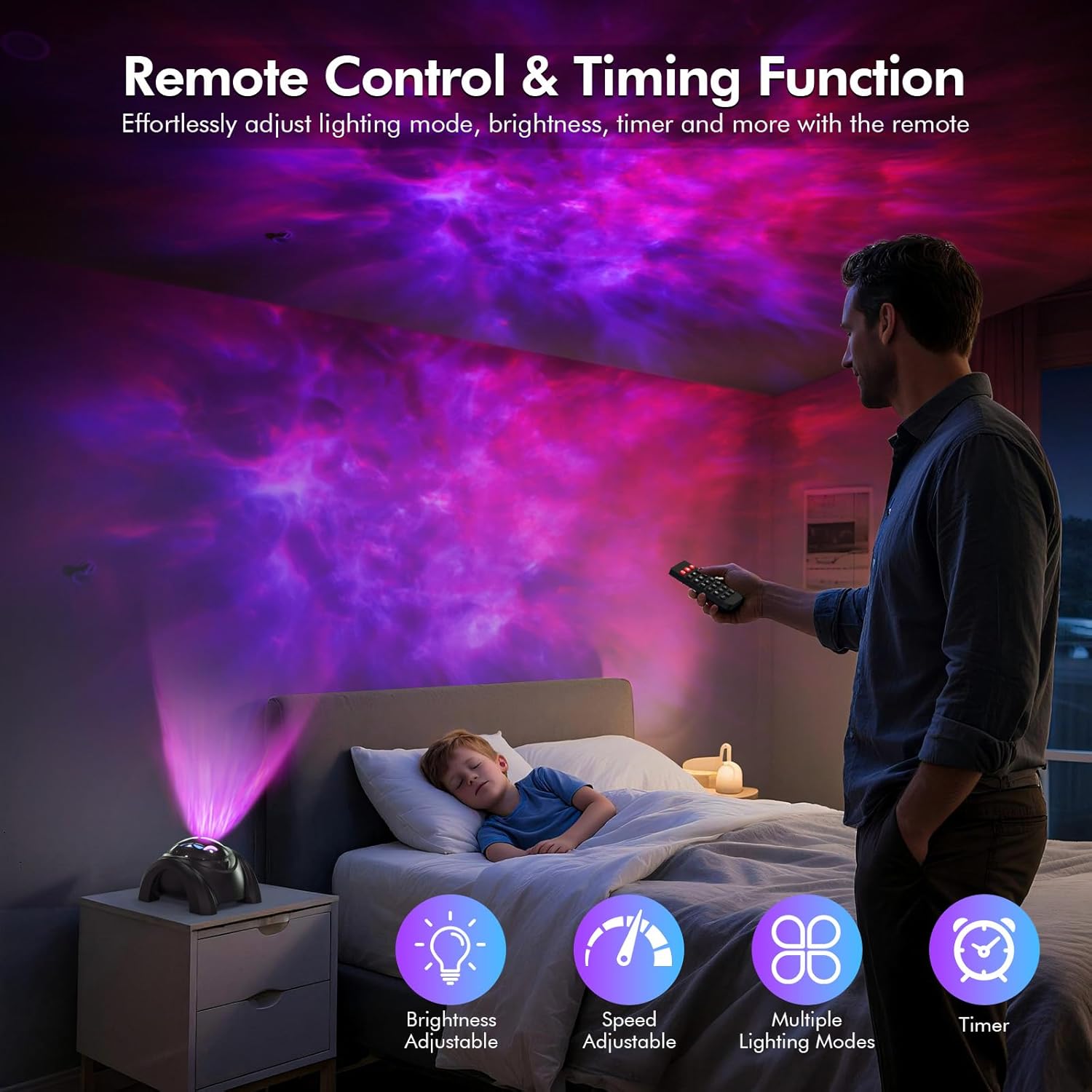 Effortlessly personalize your experience with the included remote to adjust brightness rotation speed and lighting modes. You can choose from dynamic colors and music settings for a fully immersive atmosphere. The built in timer allows for one or two hour shut off for energy savings or you can let it run all night for worry free relaxation.