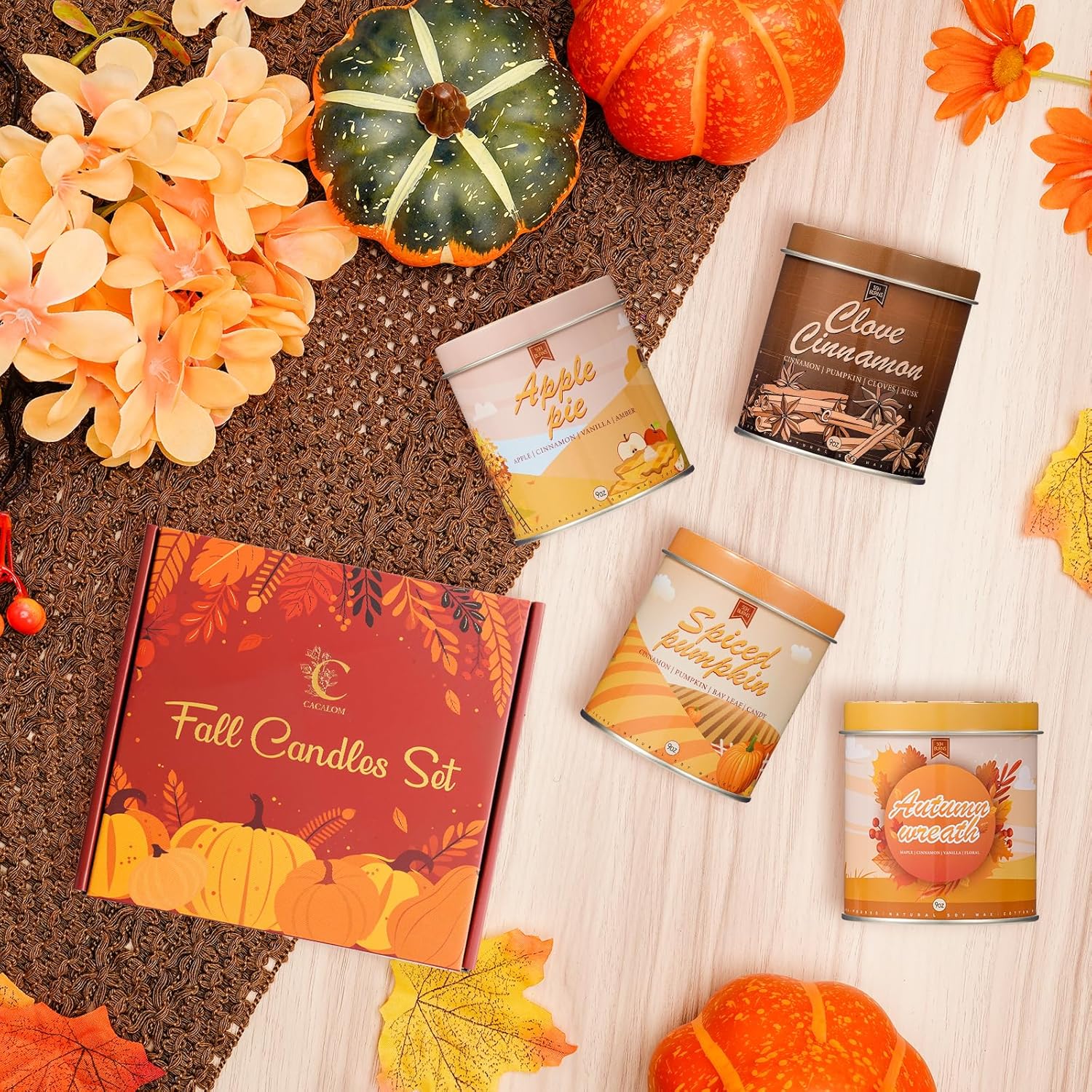 Scented Candle Set, 4Pack Aromatherapy Soy Wax Candles Valentine's Day Gift for Her Him, Holiday Candles for Women Men (Apple/Wreath/Cinnamon/Pumpkin