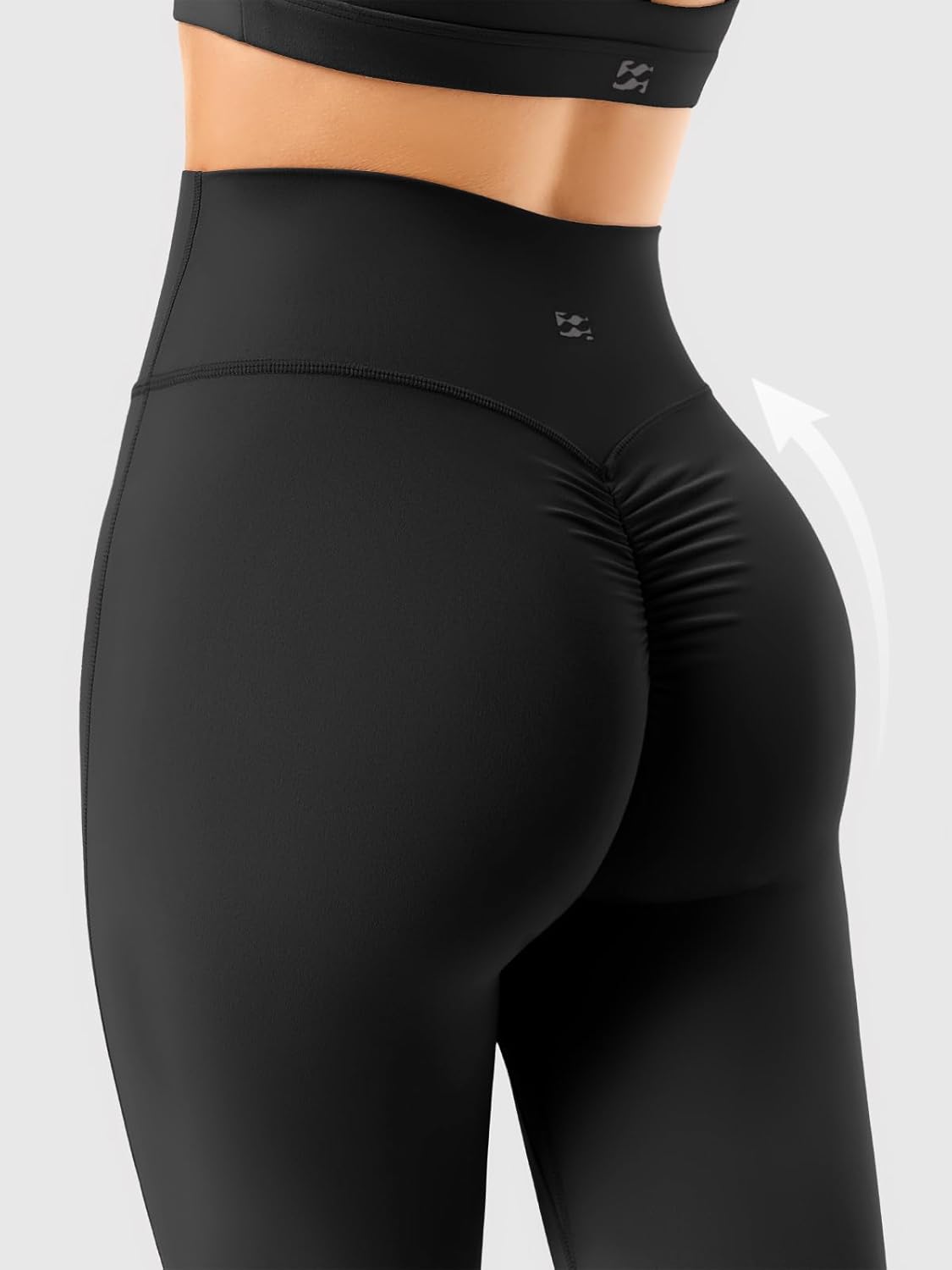 The rear ruching design is strategically placed to provide a natural lifting effect. This butt enhancing scrunch feature ensures a flattering silhouette that remains consistent through every movement, from deep squats to standing poses.
