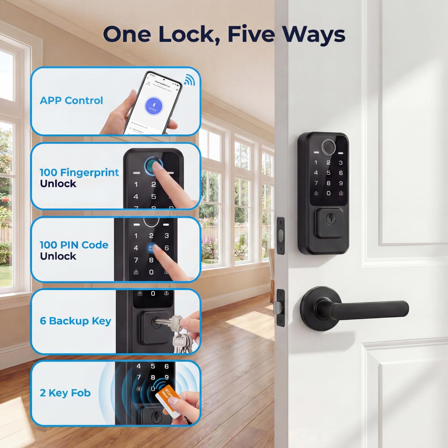 Access your home using fingerprints passcodes physical keys or NFC tags. You can also use the smartphone app to ensure you always have multiple ways to operate your smart door lock.