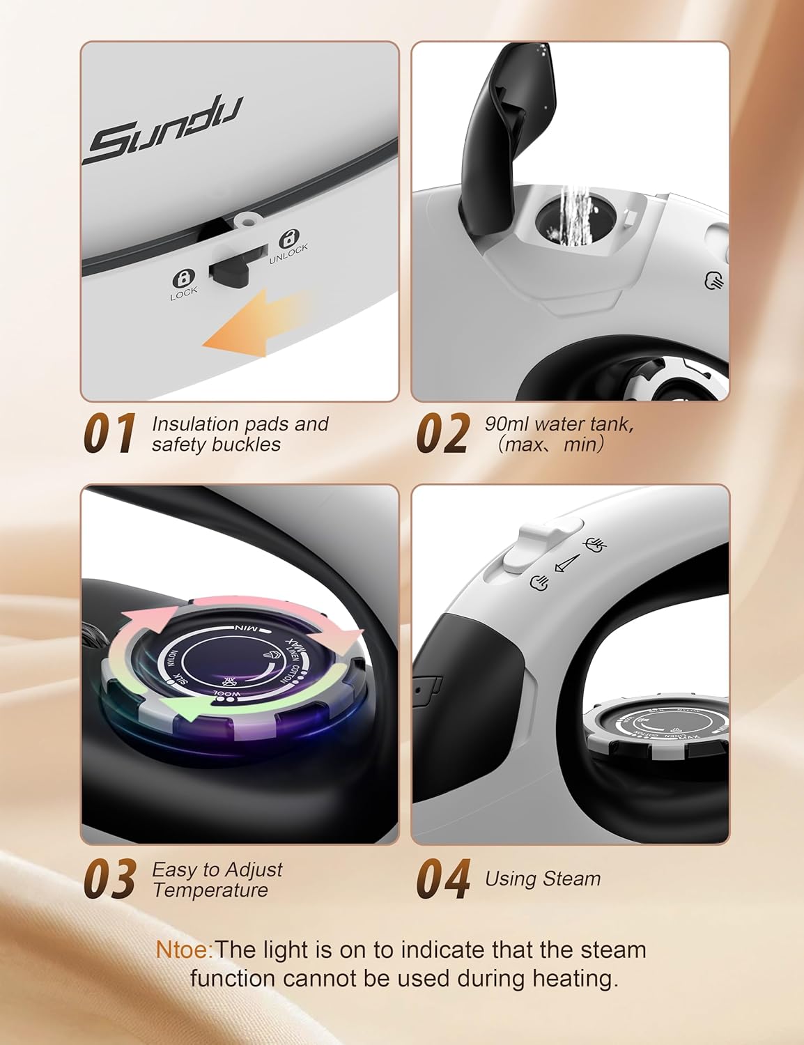 Sundu Mini Travel Iron with Steam,1000W Portable Non-Stick Soleplate Steam Small Iron for Quilting & Sewing,300 Microsteam Holes,90ml Water Tank,Lockable Safety Base,Digital Temperature Control