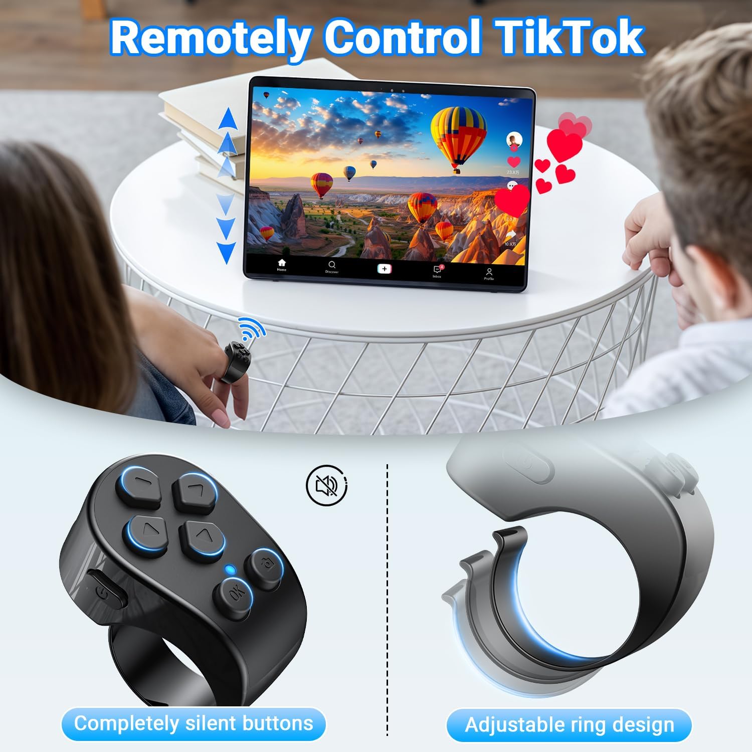 TikTok Scrolling Ring Remote Control,Page Turner for iPad iPhone & Android Tablet,Bluetooth Camera Remote, Scrolling Ring for TikTok,YouTube,Instagram,iOS,Android (Black)
