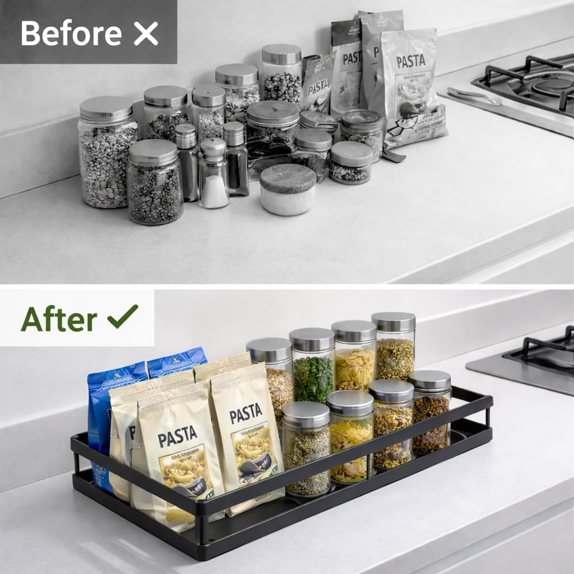This heavy-duty under sink organizer is built with industrial full square-tube metal, featuring an anti-wear, rust-resistant coating that prevents chipping and corrosion. It serves as a sturdy shelf and organizer, engineered for long-term use in damp kitchen and bathroom cabinetry.