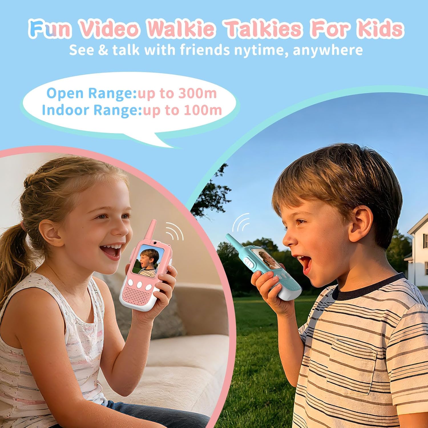 Video Walkie Talkies for Kids Pack of 2, Rechargeable Long Range Two Way Radios Toys for Boys Girls Age 3-5, Outdoor Adventure Camping Hiking, Birthday with Pink Blue Design
