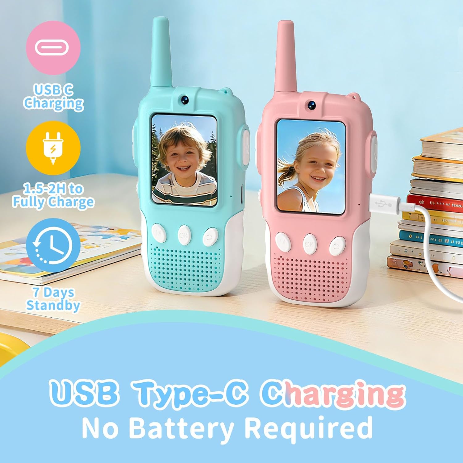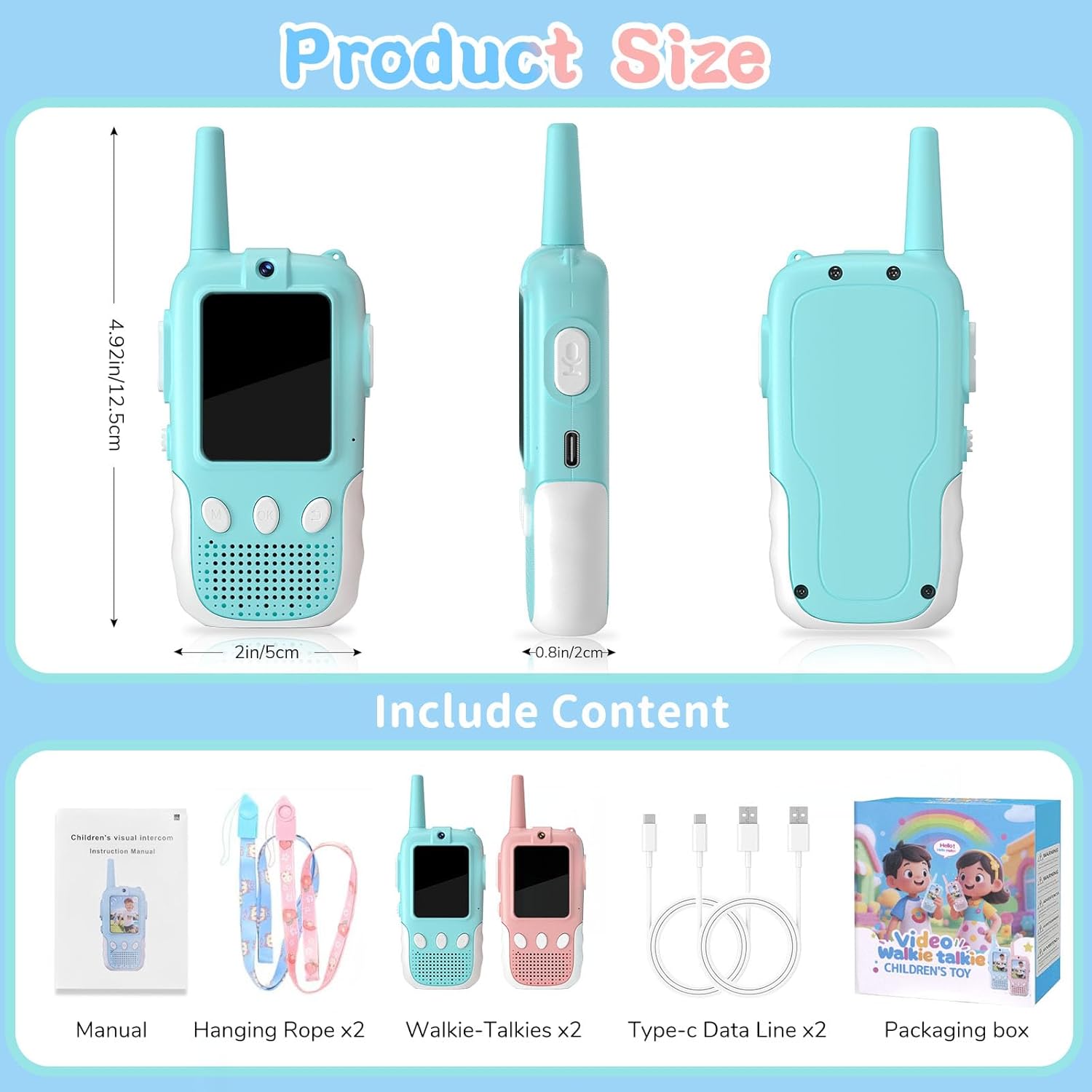 These video walkie-talkies are the ultimate accessory for courtyards, shopping malls, spring outings, and summer camps. Recommended for kids aged 3–12, they make an ideal birthday or Christmas gift for any child who loves indoor and outdoor exploration.