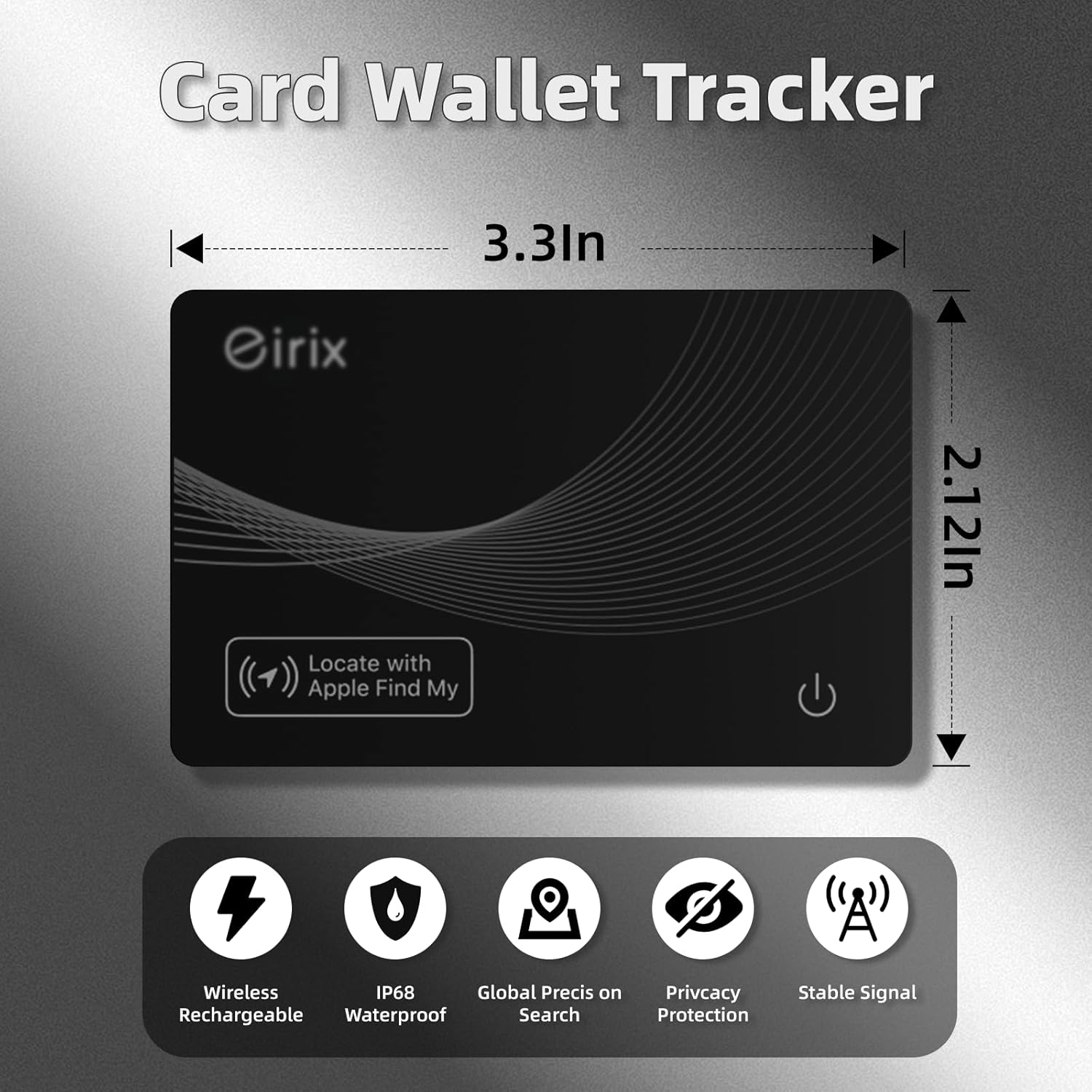 Wallet Tracker Card,Thin Finder, Item Finder Works with Apple Find My (iOS Only), IP68 Waterproof Item Locator for Luggage Tags, Passports, Bags (1 Black)